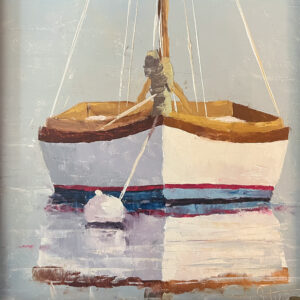 This series is full of colorful maritime paintings. You’ll find mostly small boats at anchor, often with bold colors and reflections. Painted using just oil paints with a palette knife, each original oil painting is meant to evoke a sense of coastal charm. Whether you have an affinity for marine art or seek a piece that radiates coastal tranquility and the seafaring life, this seascape painting is sure to enchant and inspire.