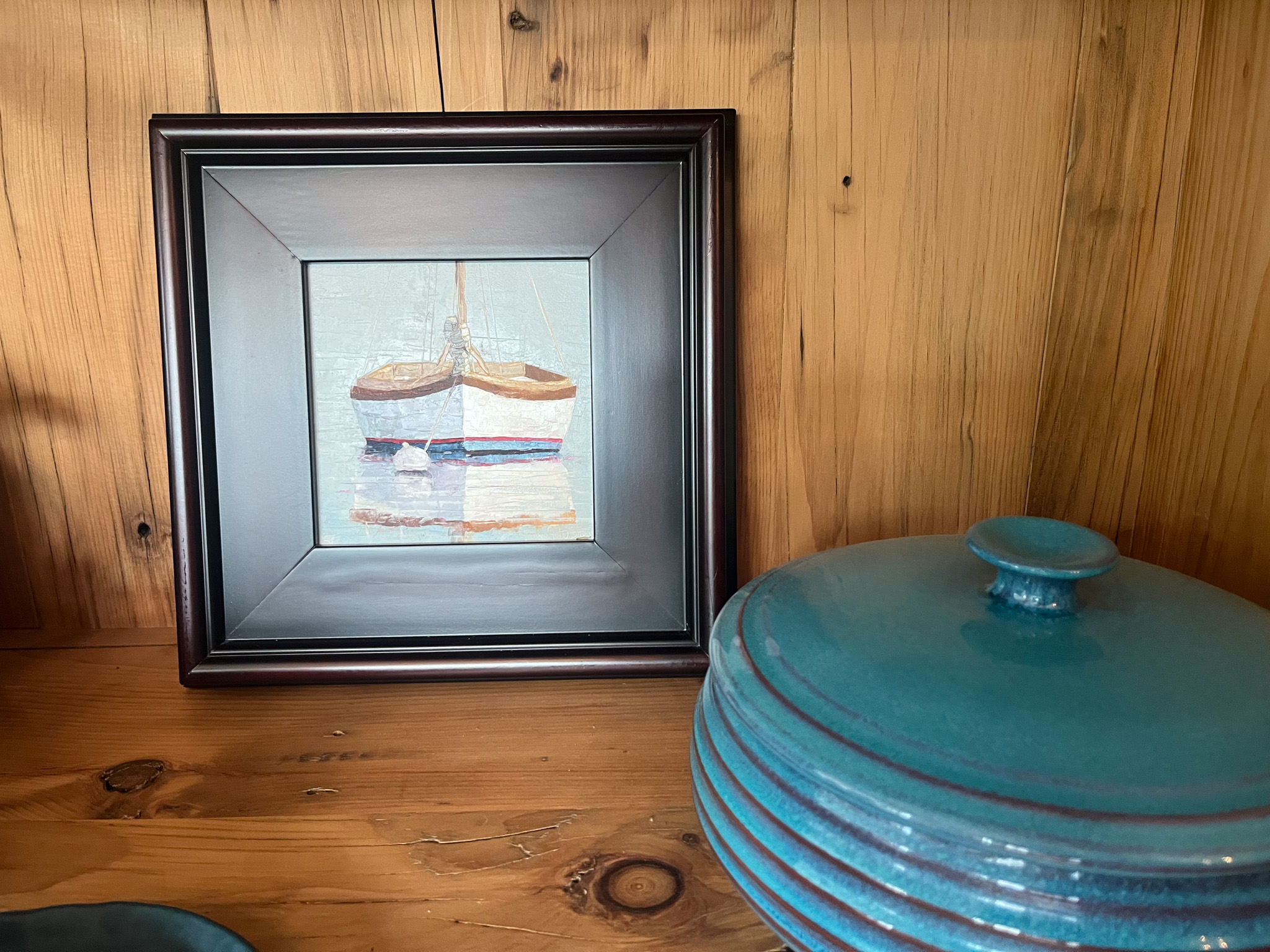 This series is full of colorful maritime paintings. You’ll find mostly small boats at anchor, often with bold colors and reflections. Painted using just oil paints with a palette knife, each original oil painting is meant to evoke a sense of coastal charm. Whether you have an affinity for marine art or seek a piece that radiates coastal tranquility and the seafaring life, this seascape painting is sure to enchant and inspire.